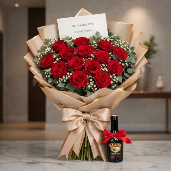 🌹 Bouquet de Rosas y Baileys – Un Regalo con Estilo 💝